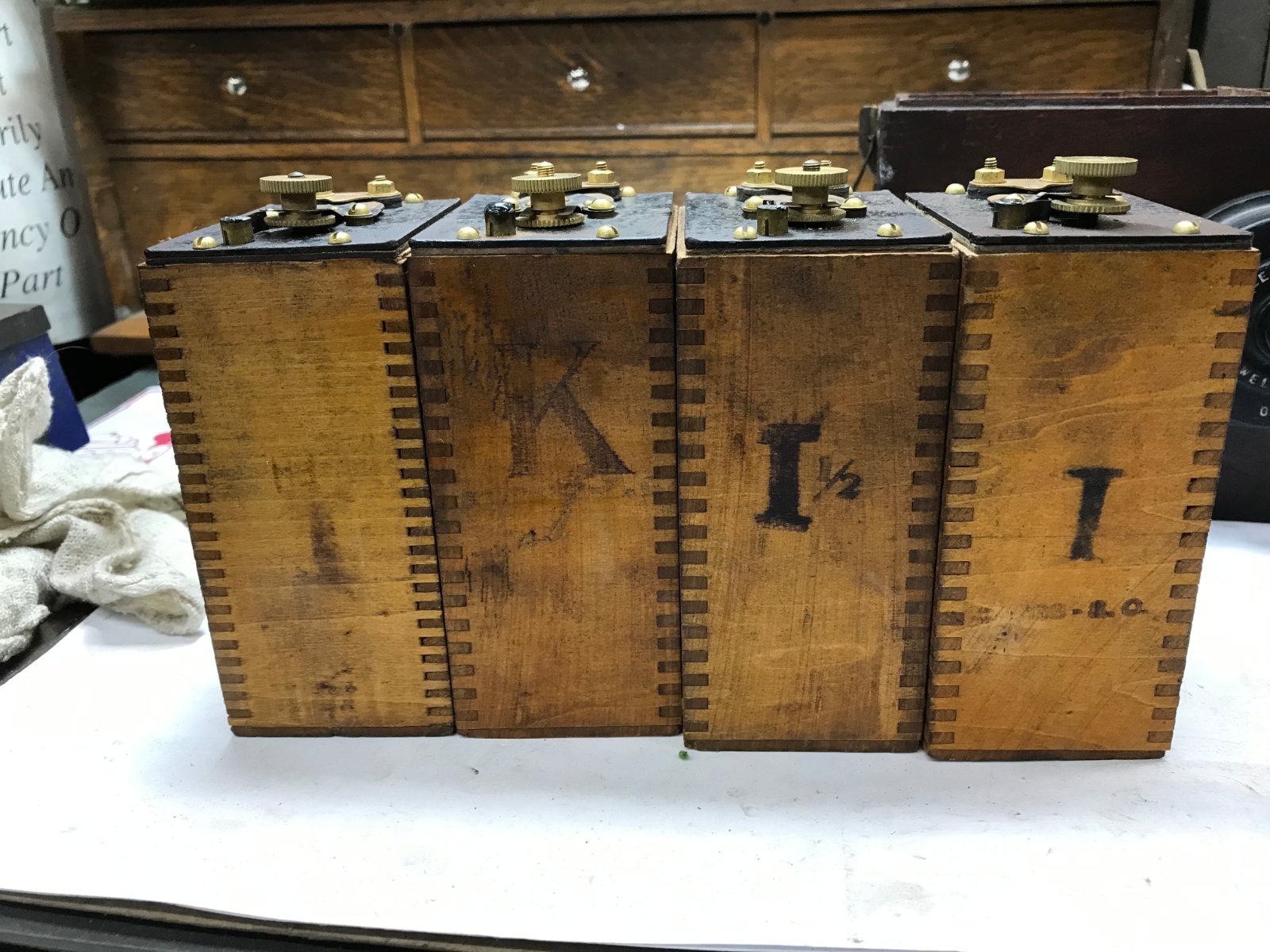 I thought I would share with you guys how I did some of the repair work to my original 1912 Heinze coil box and coils. For the most part, I've done nothing to the coil box other than clean it up a bit. I'm not sure whether I will leave it original or restore it, as it looks and performs just fine the way it is. The coils were completely taken apart and new primaries and secondaries were installed along with the correct "orange drop" capacitor Lang's sells. I decided to use the original iron rod cores from the old coils in the new coil assemblies to help them look authentic, plus they're already the correct length. I made up small wooden frames to hold all the new electrical parts, carefully soldered everything, and wrapped the primaries with good quality electrical tape. The coils were all tested with their original points before potting them with tar. The new wooden frames have plenty of holes to allow the tar to flow freely and fill every void. I did clean all the visible parts on each coil. The coils seem to get the best spark tested with a Fun Projects Strobe-Tester when the points are adjusted to between 0.8 and 1.0 amps. Now I know this isn't the correct setting for "regular" coils, but it seems to make the best spark with no "double spark" at the lower settings. Each coil was easy to set and they seem to hold their setting after a good run time. Checking them later, they still worked good. I've elected for the time being to keep everything looking original. My car is not mint condition, so neither should the coil box. I was happy to find this coil box as my 1913 Canadian touring was built in September of 1912. I don't know it I'll use the coil box long term but I have it to complete the car for authenticity. I have a nice new KW repro wood box in the car which operates great! How many of you actually use Heinze original coils in your cars?