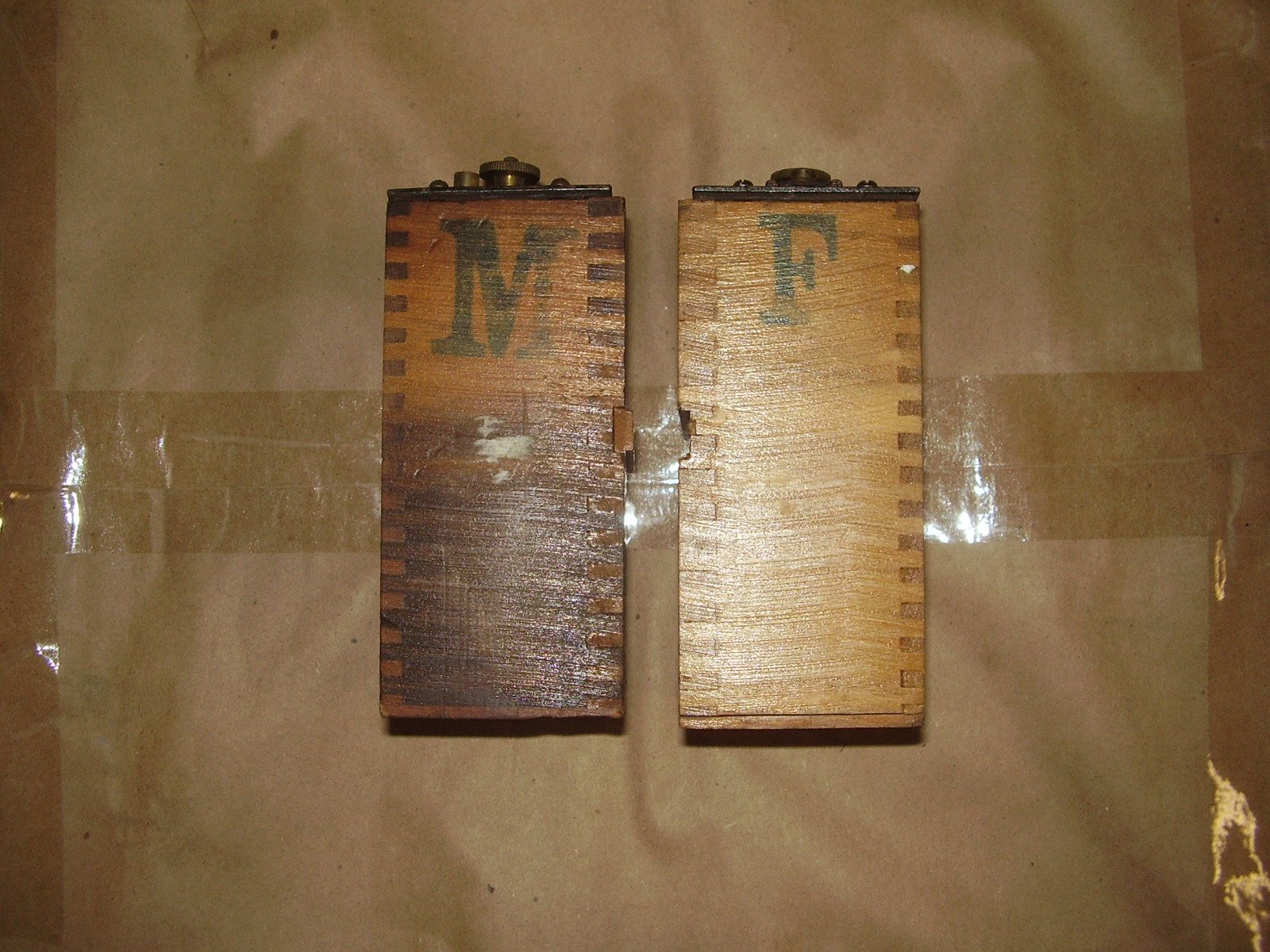 However, if for whatever reason you can't get any original wood, you can do a decent job of matching a new lid to an old box by creative staining. Usually the trouble is that the new lid comes out considerably lighter than the box. Careful application of additional coats followed by even more careful drying will usually do a more than acceptable job.