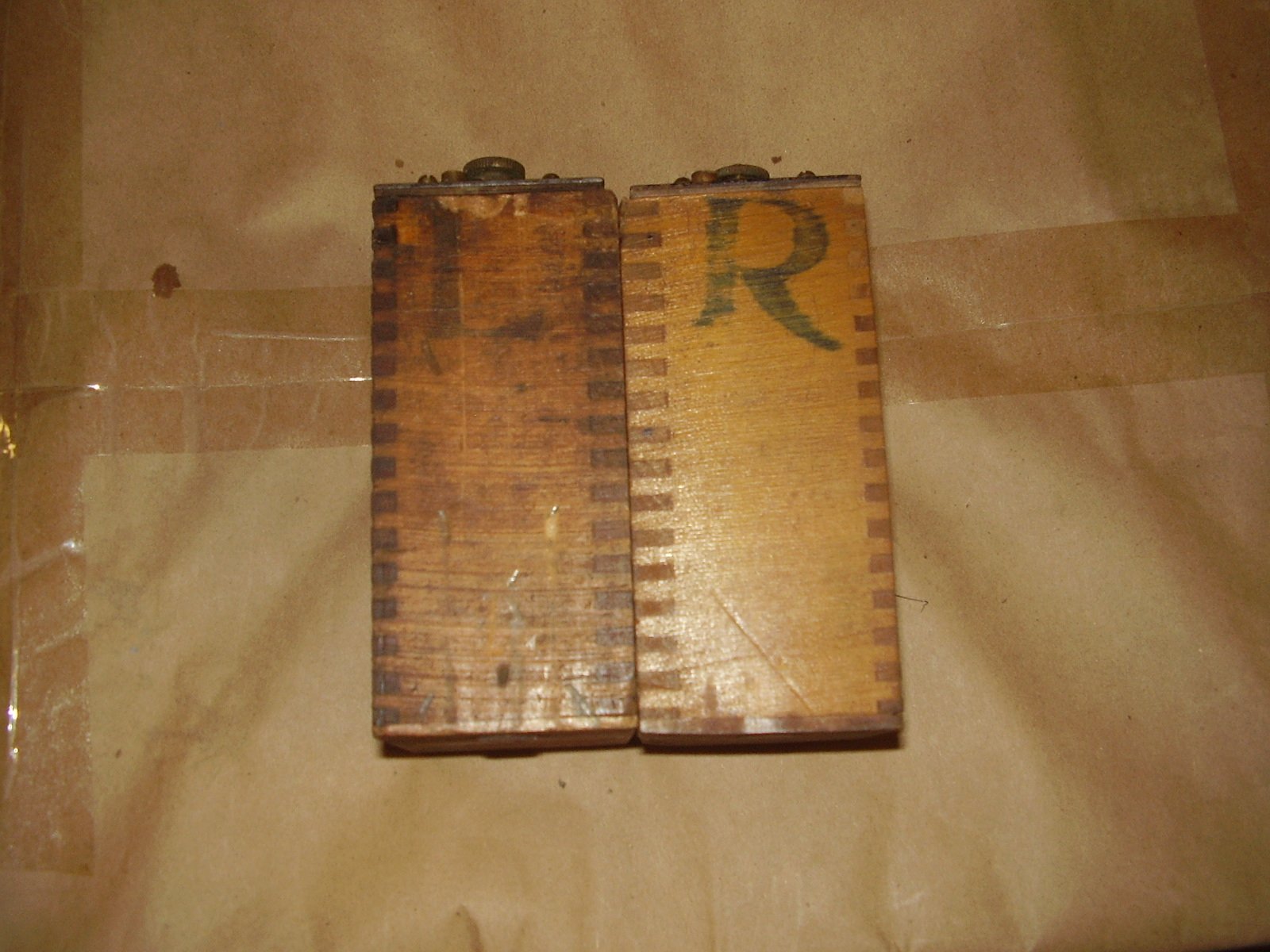 When the coilbox lid was changed to include a pair of notched strips that, together with the cam style latches, kept the coils firmly in place, this joint was no longer needed and was eliminated, although the thick side was continued, probably because of the cutting machinery. These units were then stenciled "L" and "R," probably for "Left and Right":