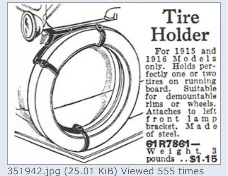 I have the spare tire holder that mounts to the running board, but I need the upper one that attaches to the left front lamp bracket: it needs to fit my 1916 T.