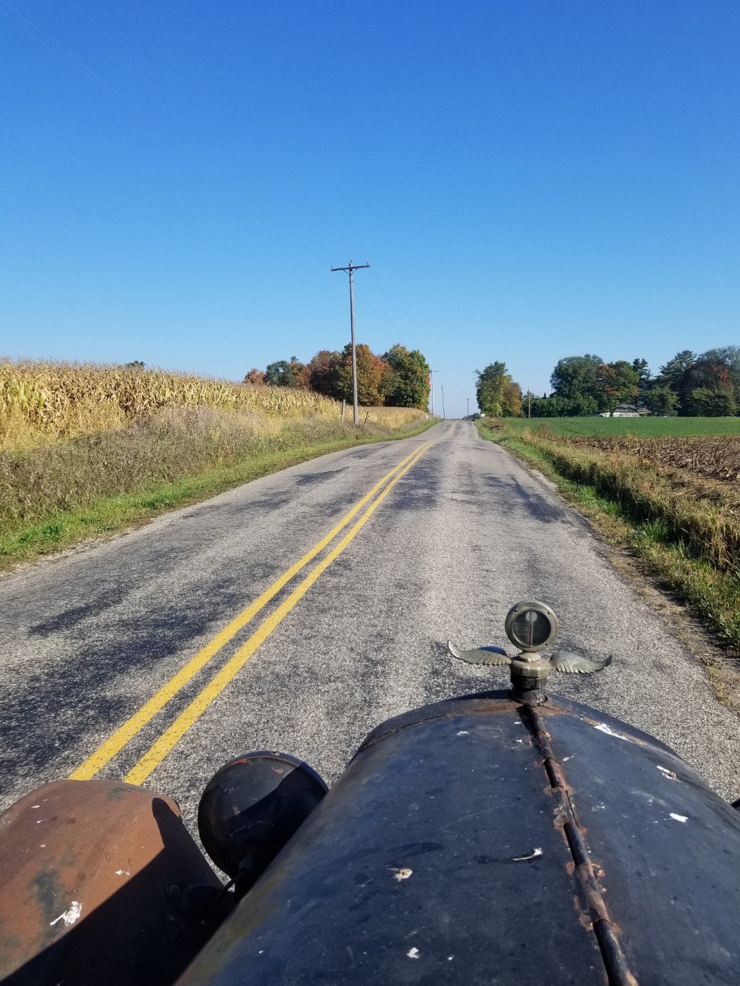 I needed a battery for my tractor and a few other supplies from town. The T was begging for a run. I drove to town about 30 mile round trip. Not many more days like today this year.