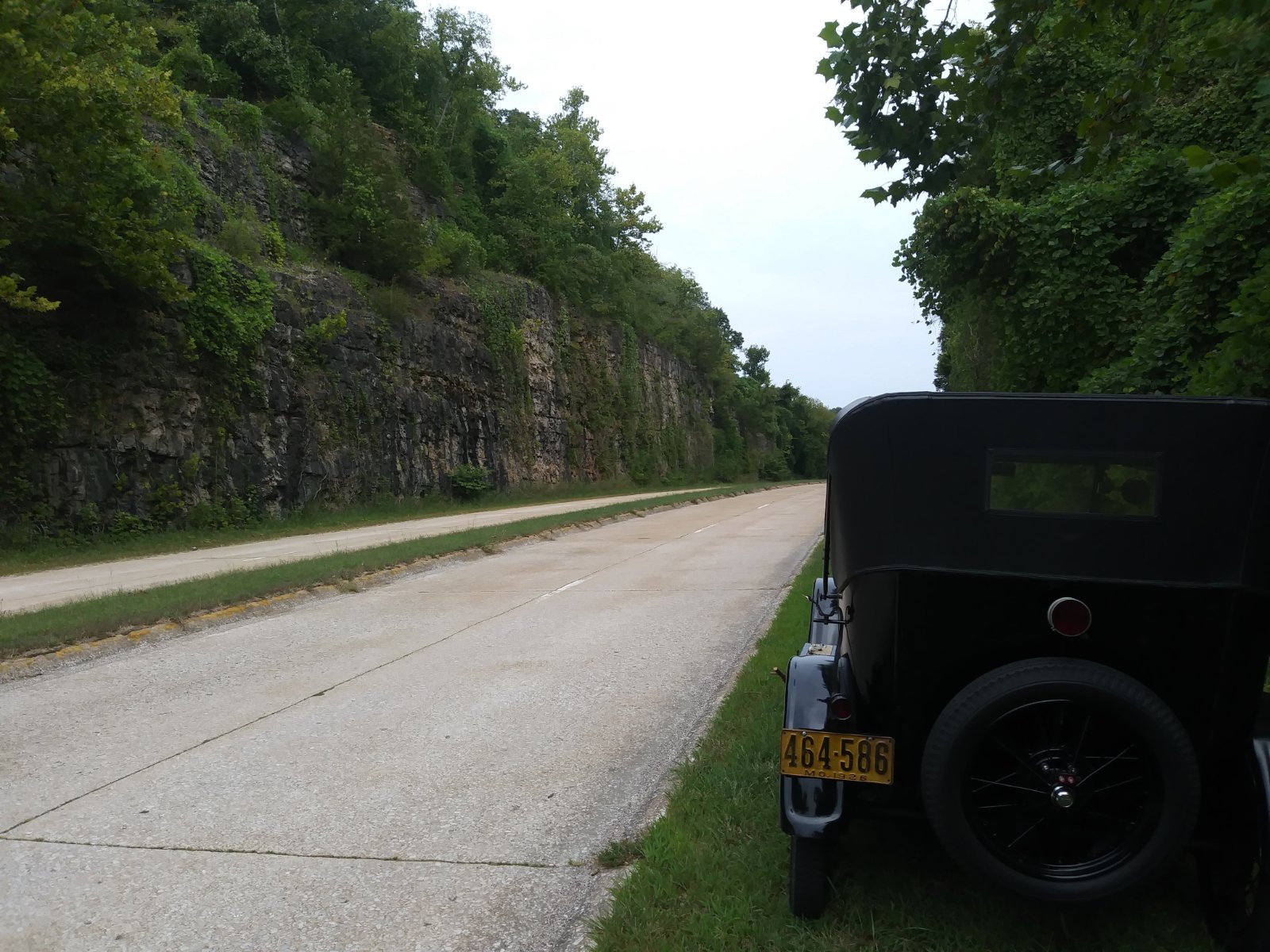 This low water bridge over the Courtois Creek, (pronounced coat-away) is closed to vehicles and soon to be replaced. But it doesn't stop four wheelers or model T's.