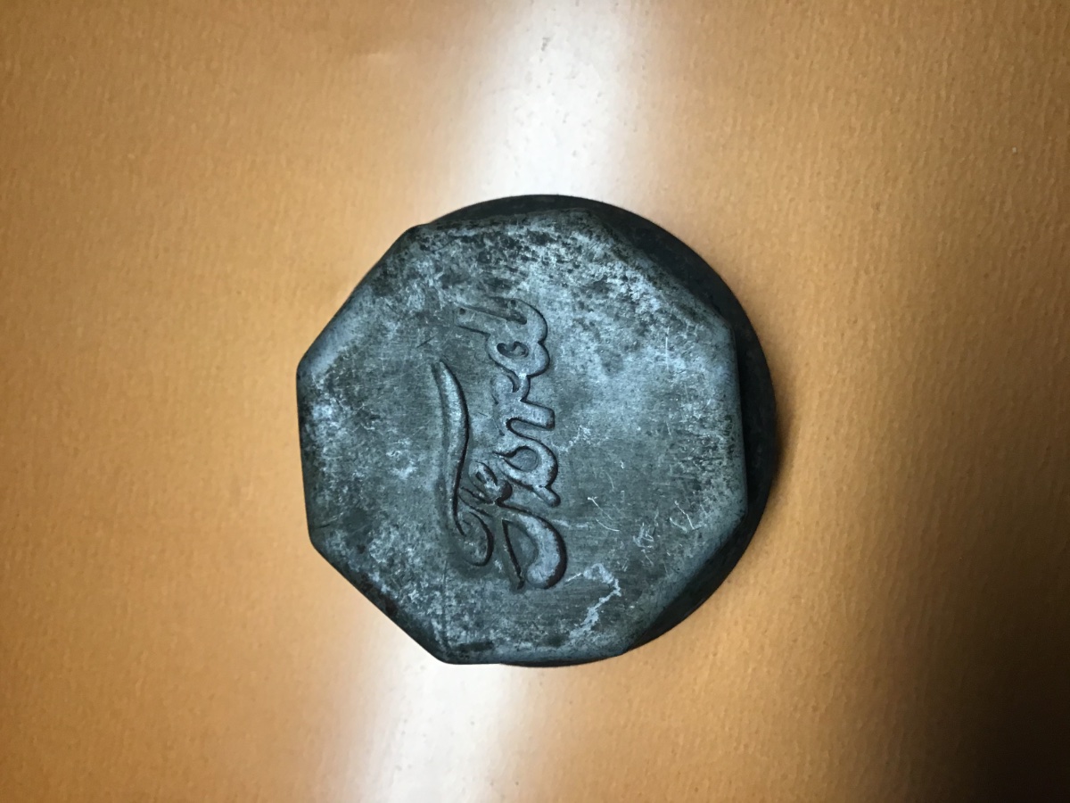 The octagonal shape and Ford script sure looked like a hub cap and the external threads made me think pre-T. I hadn't considered the fact that script wasn't used right away on T's. Maybe it is from a truck in the 30's but for now it will be a wall hanger in my garage.