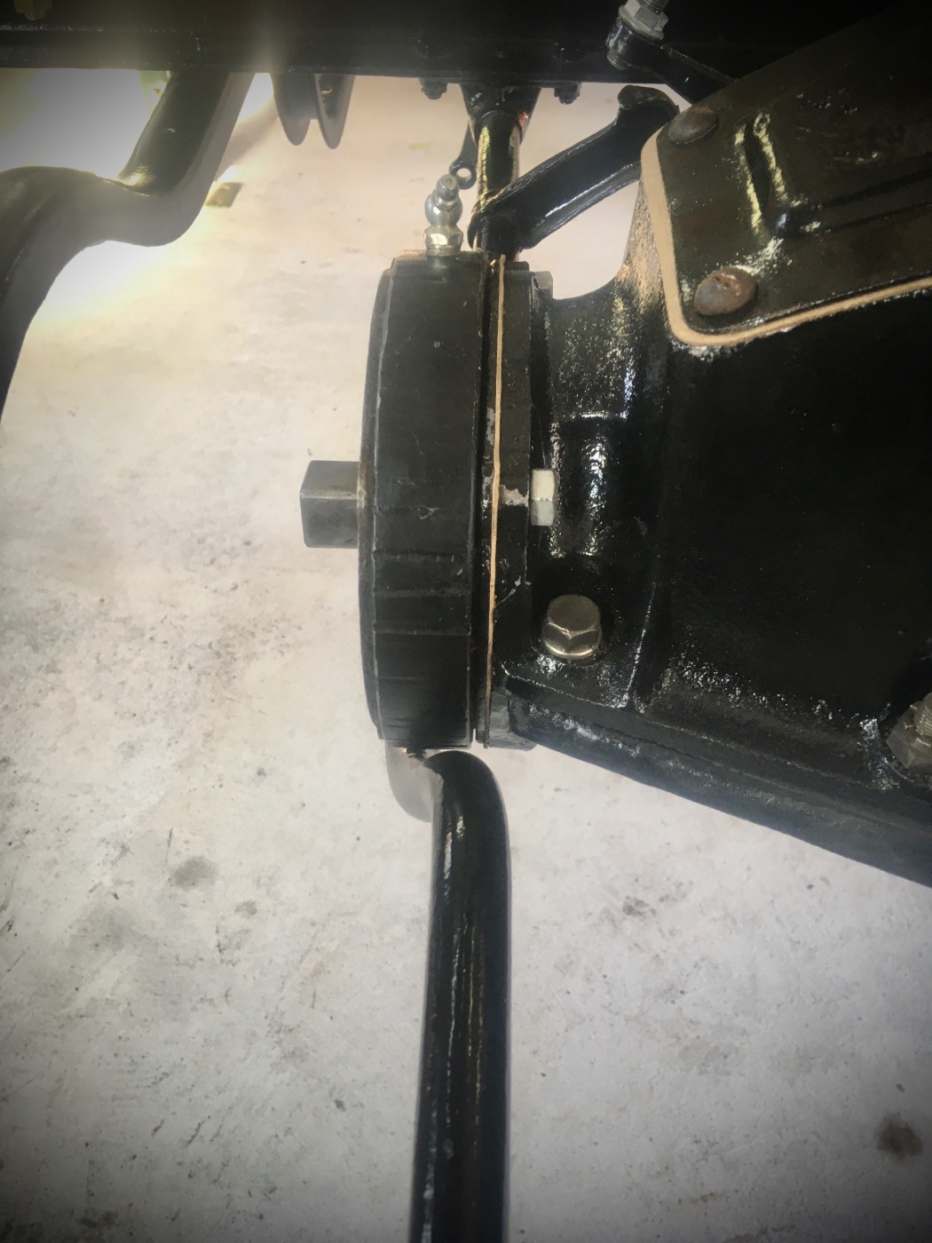 Putting the round disk in place I realized it’s purpose. Giving just enough spacing so the brake equalizer doesn’t hit the transmission. Pump it full of grease for an oil seal.