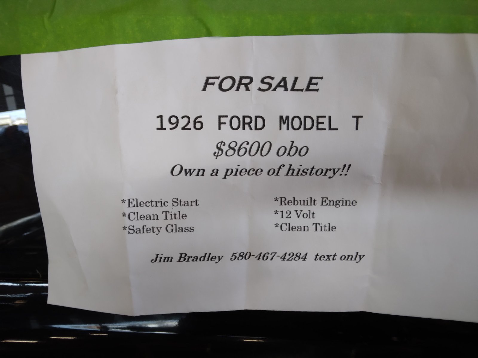 Sold pending payment. Thanks MTFCA ...