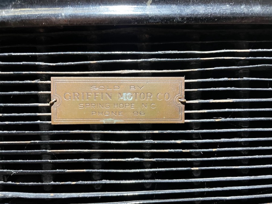 This is a picture of the T just after unloading. From what I could find out it hasn't run since the 60's. The dealer tag on the radiator also.