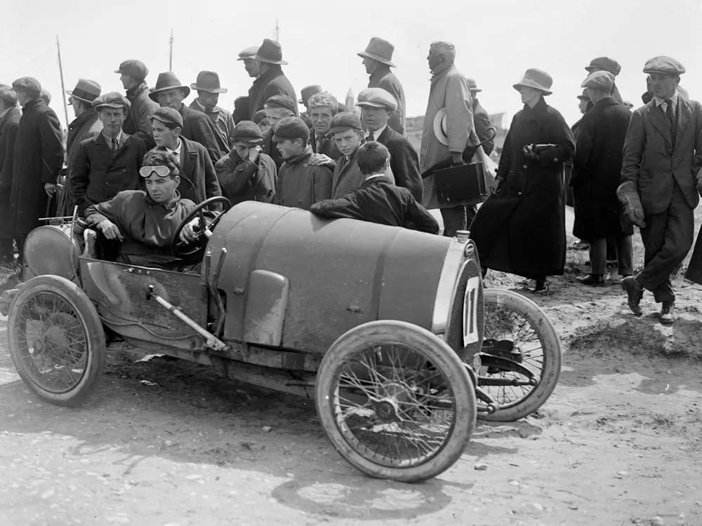 Here he is in a Bugatti Brescia 1496 cc at the Porthcawl Speed Trials, June 29, 1922.