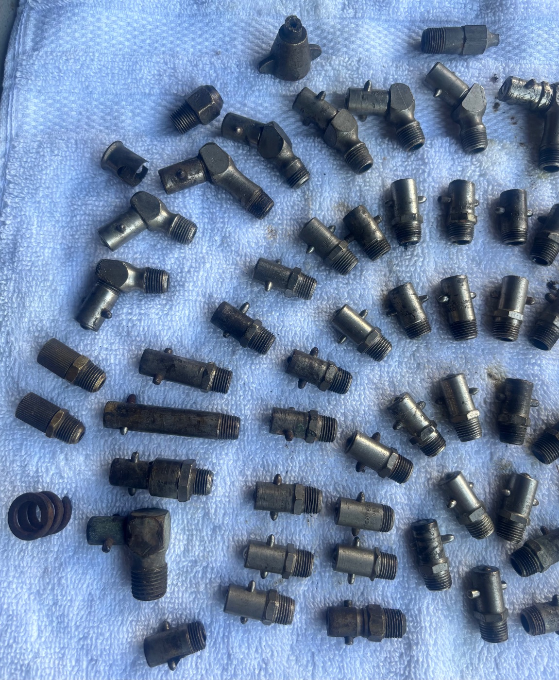 Lot of pin type and a few zirk grease fittings and a couple pin type caps. There are a few nos pin type in the bunch. Whole lot $40.00 plus shipping.