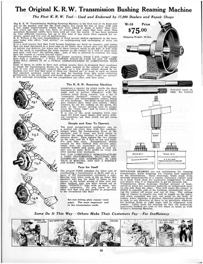 I have posted a dimensional drawing and photos of the KR Wilson transmission bushing shell reamer mandrel on the discussion forum of this web site. Enjoy!