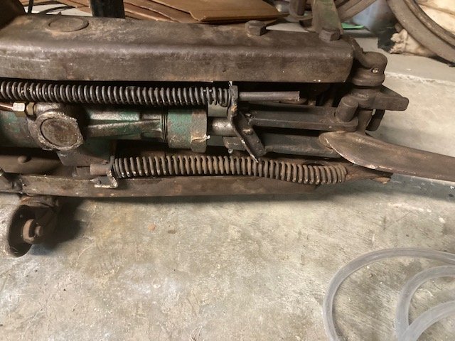 I have this working well enough after discovering that the two ball valves were obviously not even there. While the saddle now stays up and has a lot of force it still sinks a bit with time and takes awhile to start to go up when pumping. The Zerk fitting on the lifting arm was smashed so I drilled it out and am awaiting replacement Zerk. It looks like it hasn't been greased in forever. I also am unsure how the recoil works for the pedal to pump it up. As in it has no recoil at this time except for manual. Progress!