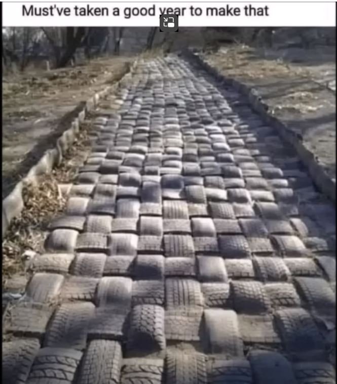 It looks like it does Dallas. It looks like it is woven, using just the treads cut off of the tires. It looks like a walking path to me. I wonder if it is a trip hazard.