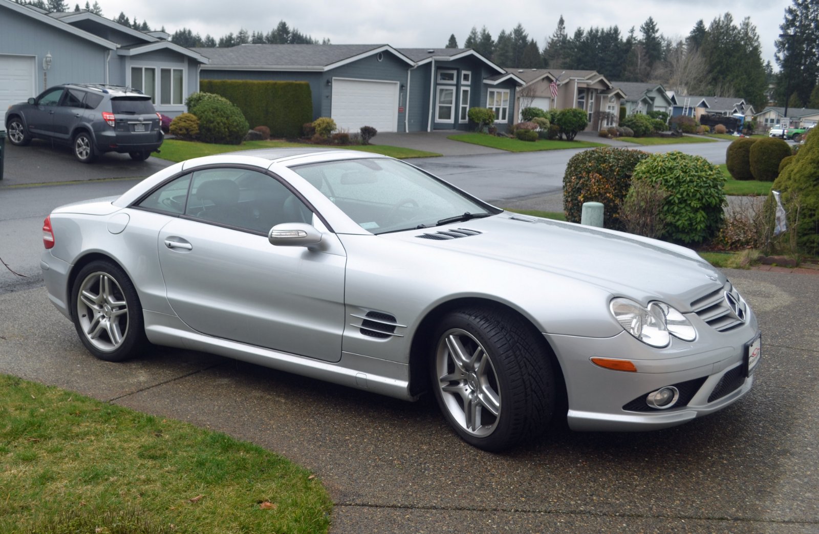 I just bought this 2007 Mercedes SL 550 about 2 weeks ago. It will have to live outside as my garage is full with a 1916 Model T coupelet and a 1936 Packard convertible sedan. I just had the exterior of the Mercedes detailed and had a 9 year ceramic coating applied to help protect the paint.