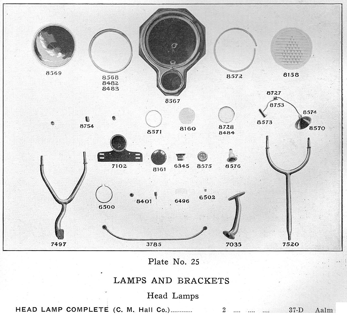The parking lamps may have been for certain models, or the car may be a different year than my parts book. The book leaves much to question as it covers 8 different models, and the parts differ. The radiator in the book is quite different than the one on the movie car. In the listings, several lamp shells are shown and listed by model. C. M. Hall as well as Brown were used.