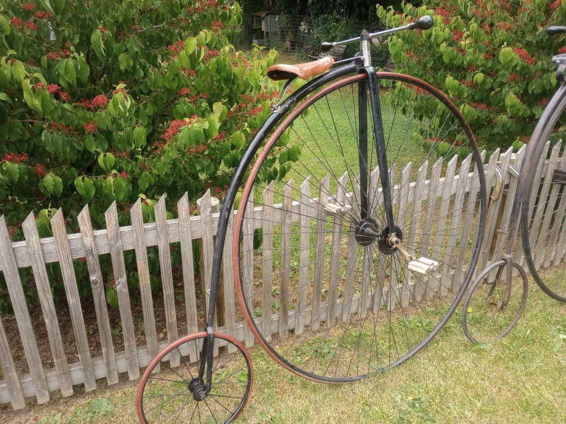 I have 2 Columbia High Wheel Bicycles and might be interested in selling one or both of them. Both are 54 inch and both are rideable but the unrestored bike does have very old tires and saddle that should probably be replaced before any serious rides. Contact me for more pictures and information. I am asking $3750 each or $7000 for the pair but I might do some trading.