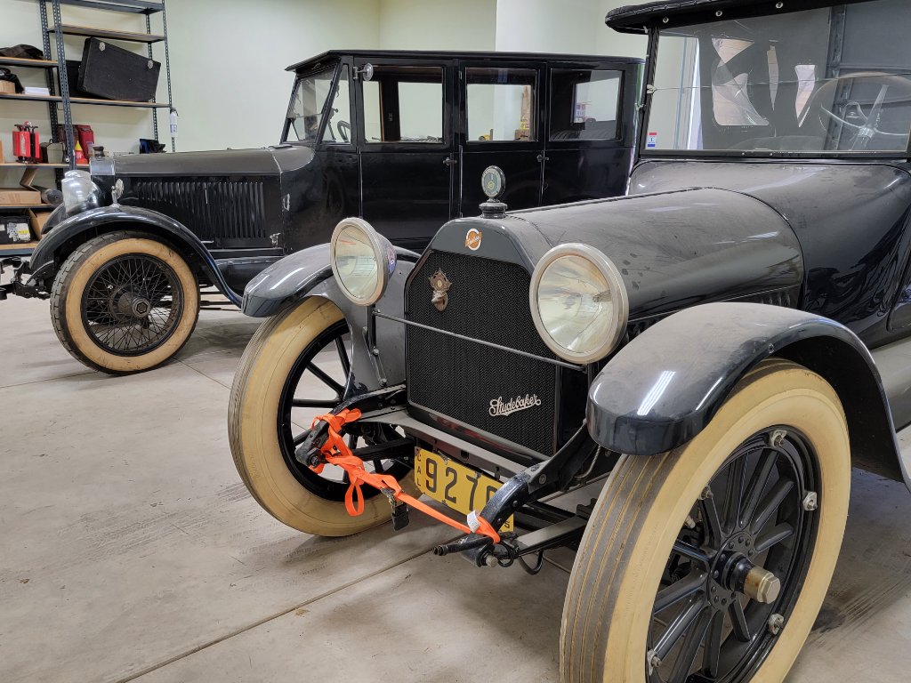 The Studebaker is a 1915 Series 16. The Series 17 cars had a cool feature - you could turn the passenger's seat around to face the riders in the back seat. The Studebaker sixes are very roadworthy cars.