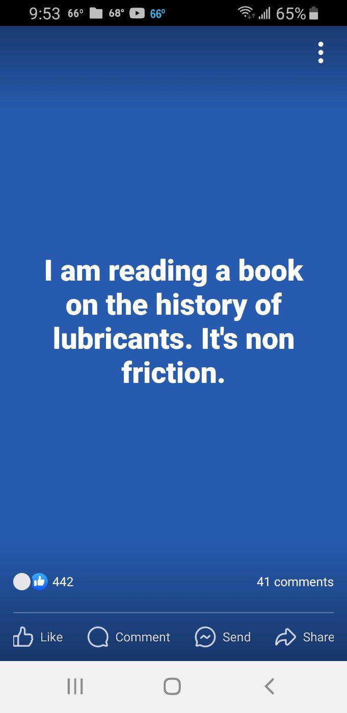 You say it's non friction? I've told people that too, but nobody ever agrease with me.