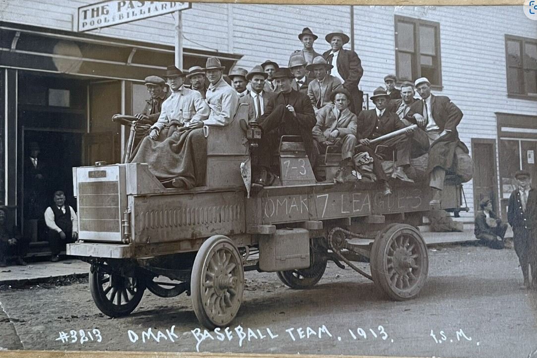 Great Stuff Guys! I always enjoy seeing these. Herb's photo of the Omak baseball team looks like an Alco truck, about 1913. "In addition to automobiles, the American Locomotive Company manufactured over 1,000 Alco trucks from 1909 to 1913. A cab-over-the engine design was universal on the Alco trucks, ranging from 2 to 6 tons. Maximum speed ranged from 8 mph for the heaviest Alco to 17 mph for the 2-ton Alco."