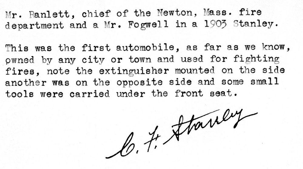 A Stanley steam car fire engine would certainly earn the motto "Same Day Response"