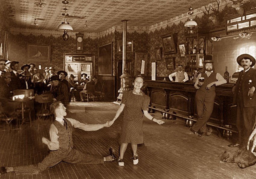 Interestingly, Bernard phoned in this photo this evening. It not only suggests that officer Puddinghead was subdued with a shot or two of Happy Sally, but demonstrates some of Euland Swogglesburg's agility on the dance floor. Betty Jean Larkvonnet happily keeps up with him. As mentioned before, much of the history of the Tri-Burg area comes round full circle or at least grinds easily into the mix. Betty Jean later had four hansom sons, the youngest becoming foreman over to the Greenhaul Mill on Harrison. Not South Harrison by the Library but Harrison Lane past the Sewage pond. His brother looked more like the twins than either of them. Folks commented to that a lot.
