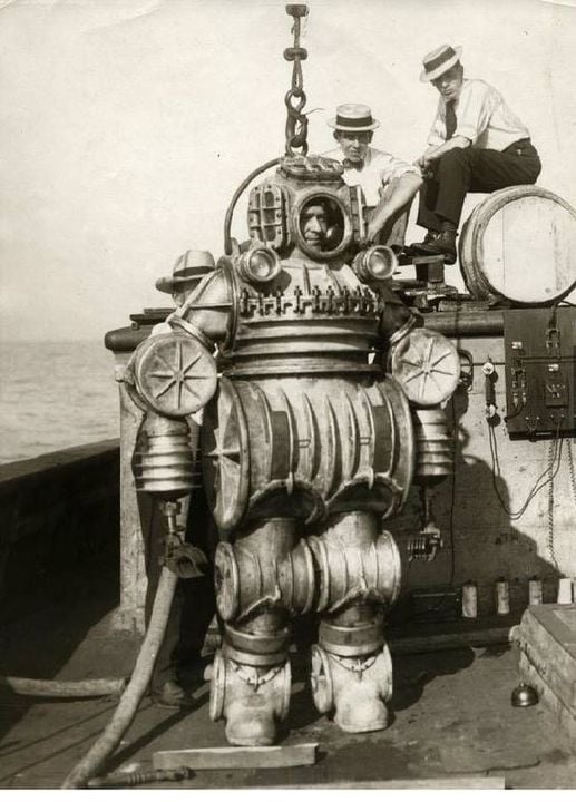 If it isn't Martha in the suit she wouldn't be far away. The MacDuffee pressure proof suit with ball bearing joints was her passion for all those months and well into her salinity.