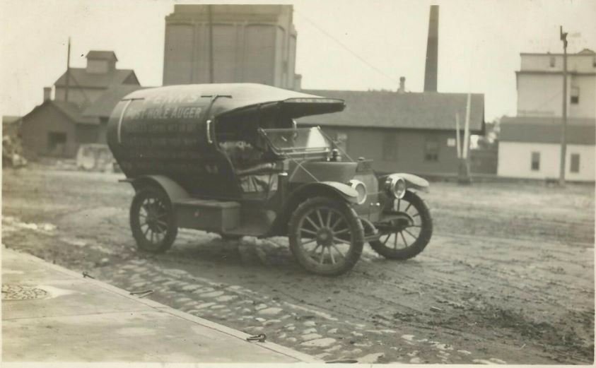 "The Four Wheel Drive Auto Company, more often known as Four Wheel Drive (FWD)". The license plate is most likely a 1918.