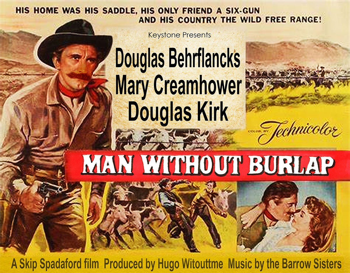 What a treat to see the movie poster. I believe Aldo VanPinksburg did the illustrations for the poster too. I also got to "see" Man Without Burlap on the radio. The film was never released in Idaho, none of the theaters were set up for 24mm. I was about five, sitting on Uncle Lumby's lap. It wasn't much fun, Uncle Lumby was deaf as a stone and never turned the first page.