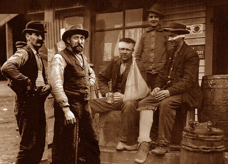 The taller fellow does look a little like Sebastian. He's taking his daintily from a bottle while the others drink from the barrel. I see their Liquor store is still looking for a part-time clerk/cashier. The "Spuds" were fierce rivals of the Chugwater "Buffalo's" They were tied 8 to 27 in the last game. The post office ended two miles from town after the collision.