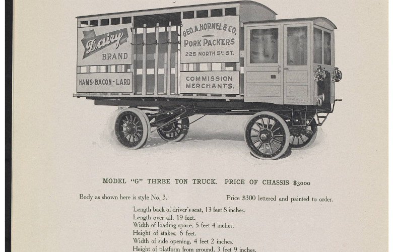 "...1929. This truck, designed to carry a firefighting tractor, was nicknamed the "Bob Fraser Special.""