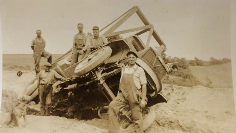 Yes, near the grain elevator. Larry P. told Joe about it and claimed it was fair game. Several of us pried it out of the frozen ground and put it on the trailer pictured in the link. Joe managed to get it running. Soon after it was claimed to be another fellows grandfather's truck. He had two of then running on his farm back in the teens. Joe lost out but had the best time spent with it. Later in life someone let the water freeze in it over the winter.