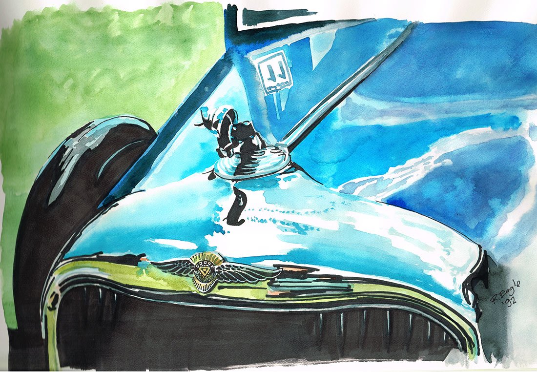 Watercolor can be fun too but I haven't done enough to use it skillfully. I believe this is a 1941 Ford.