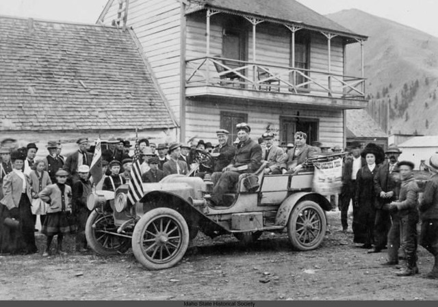 Maybe these guys? <https://www.technologyreview.com/2013/0 ... road-trip/> West Newton, Mass to Portland, OR in 1910, driving a 1909 Oldsmobile. The photo would have been taken after the boys and car had put on some hard miles.