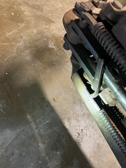 The spring shown above this one seems to be supported by an angle iron bracket, sitting at an odd angle and looking as if it's been broken? modified?