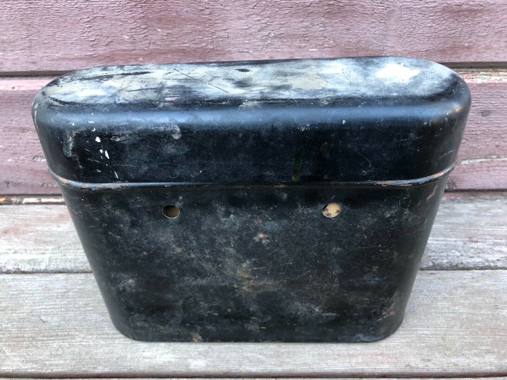 The Flanders uses a low tension magneto and a coil box for the ignition, but the owner had the option of hooking up four phone batteries in series to provide 6V to the coil box for starting. I found an original battery box on Ebay, and a seller that makes replicas of the old-time phone batteries. Each replica takes two "D" size modern batteries in parallel that fit inside the replica case. Several brand labels are available. I bought four of the replica batteries as shown to fit in the original battery box.