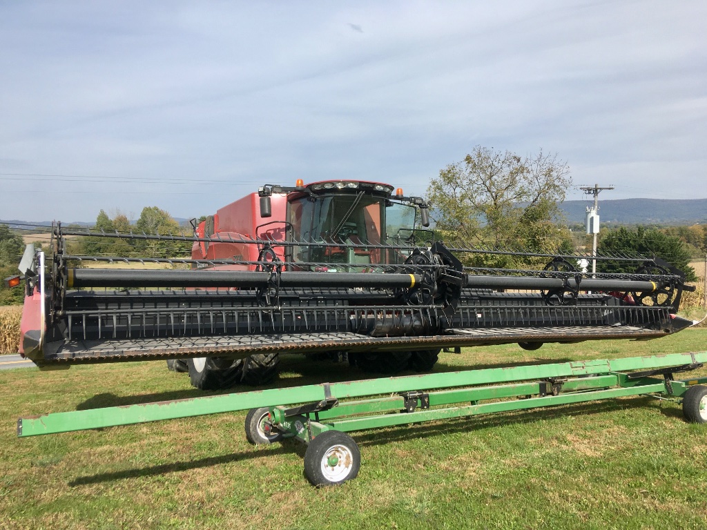 Case 7230 Axial Flow Combine 34 ft Draper header This big girl has finished up early corn and now has switched over to soybeans. Let the dust fly!