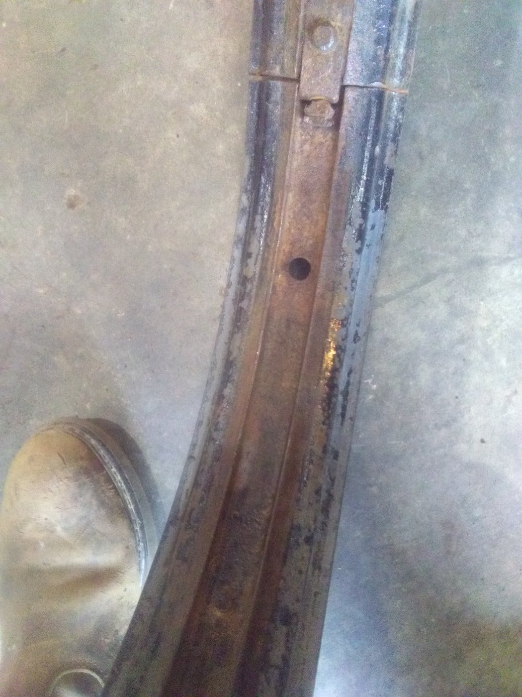 well the old tube took some air but then caplooyee, so i took the tire off and here are some better picks of the rim. tire was hard as a rock and no good at all sadly.