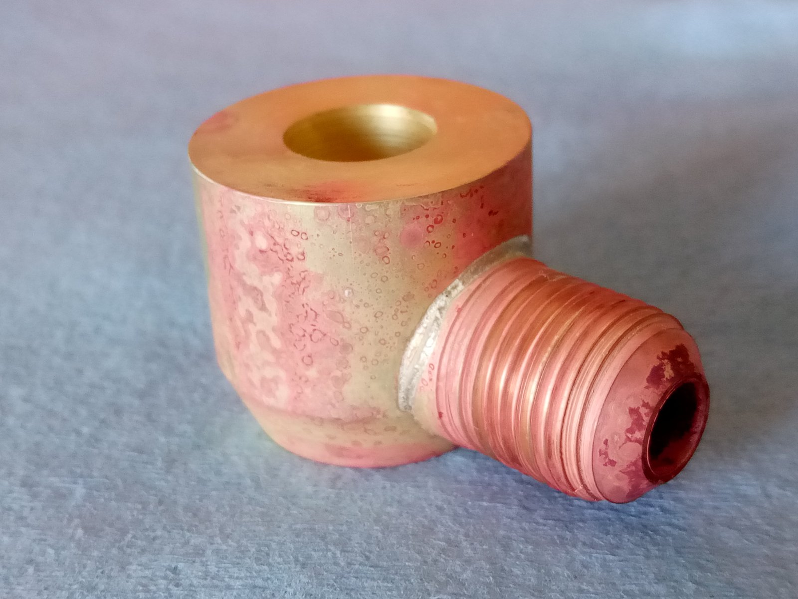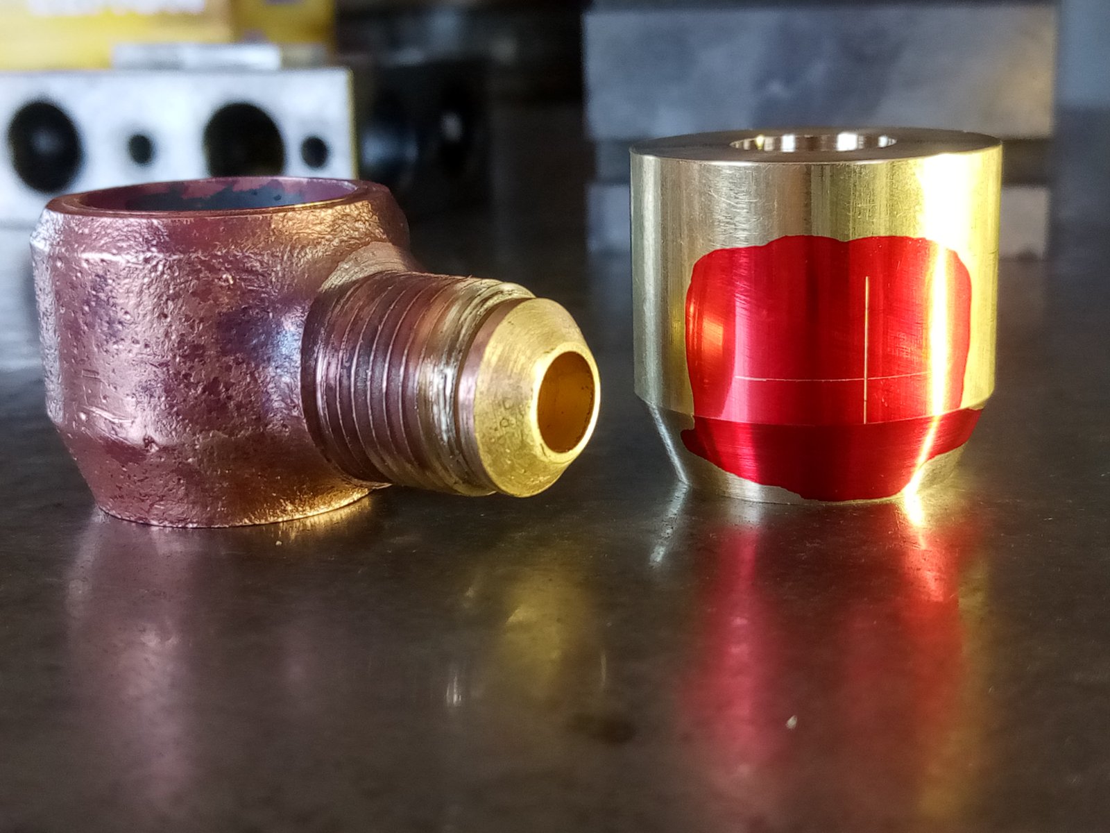 If you're curious, that part took 5 1/2 hours make. Material cost of raw material - brass tubing and brass sheet was $45 before shipping. Boring from solid brass would have been a horrendous waste of material.