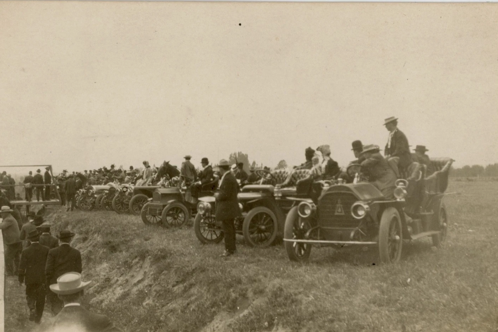 Is that a pig nosed Ford model K third from left with a horse in the drivers seat?