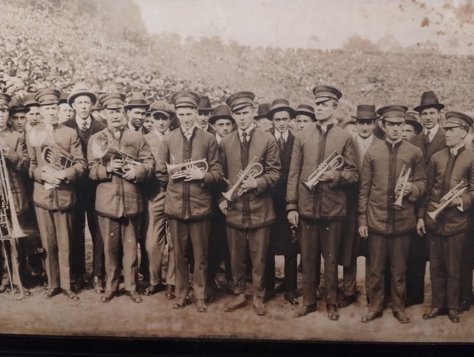 I found this in an antique shop. It is a picture of the 1915 White Automobile Band from the White Automobile Company. It has two interests for me; first the old cars and trucks and second since I play 1880s-1930s period cornets and trumpets in our Municipal Band. I have played similar types of cornets in the picture.