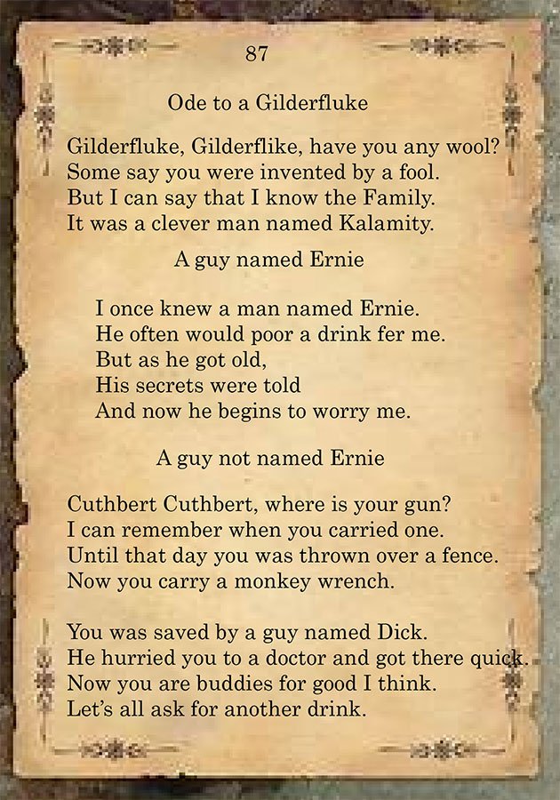 You may recall that Kalamity Dick was called in to investigate spam smuggling in his later years. His triple wound gilderfluke could detect spam from up to 4 miles away even if sealed in it’s tin. Here he is shown with Inspector Krasswinkle planning a raid on gang members later that same year. The skirmish went off flawlessly and Dick hadn’t fired a shot. A commendation still hangs in Ernie’s Bar thanking him. Forensics experts from all over the western states depended on his techniques to solve tough cases. Sometime even just a six-pack.