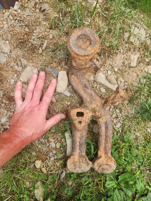 This “thing” was found after a wash out in a creek in Pennsylvania recently. A friend sent me the pictures and I figure this would be the place to try to figure out what it might have been part of.