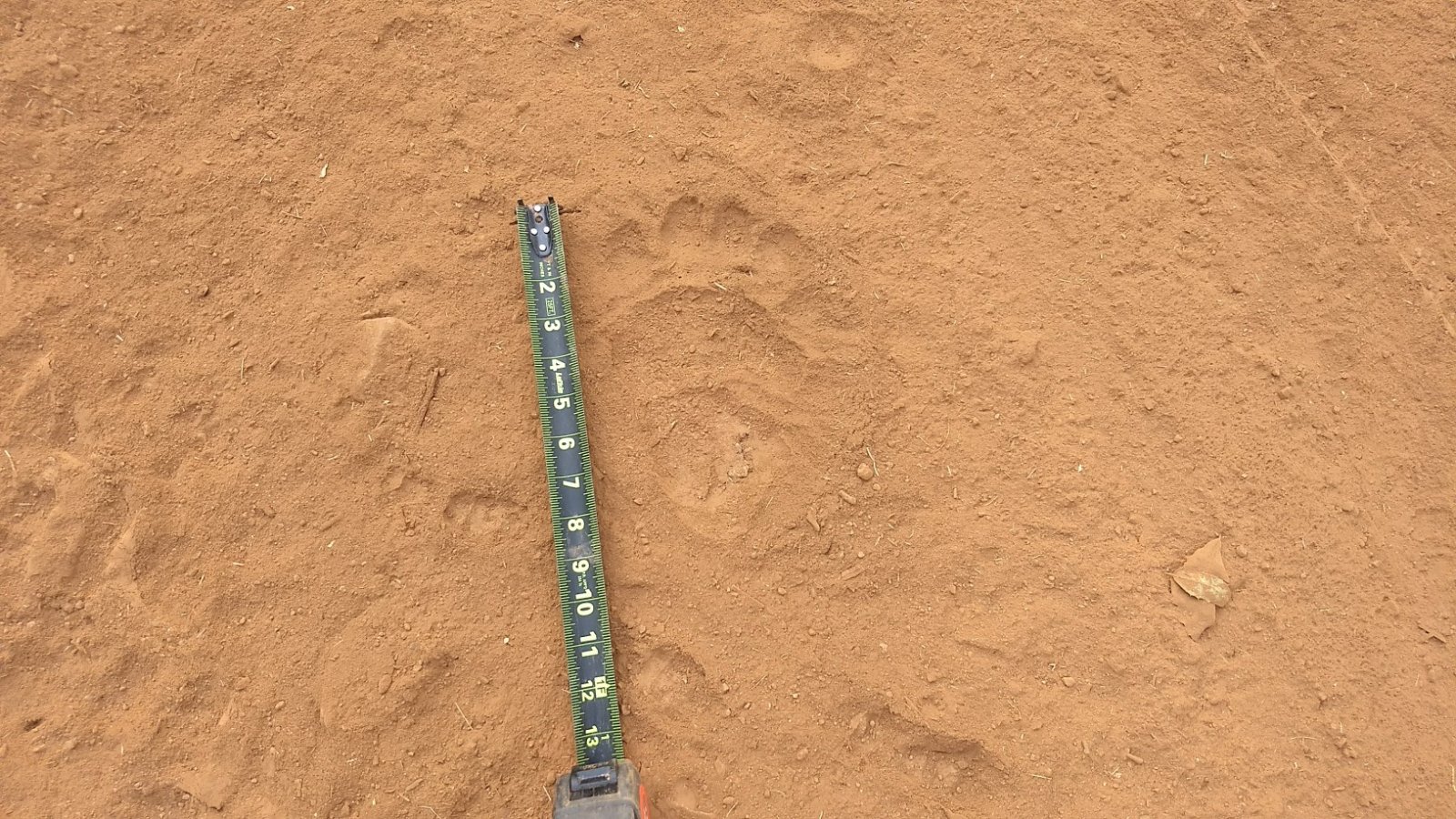 My reservoir last spring before filling; quarter used for size comparison. Medium size Grizzly on dry/compacted bentonite clay: