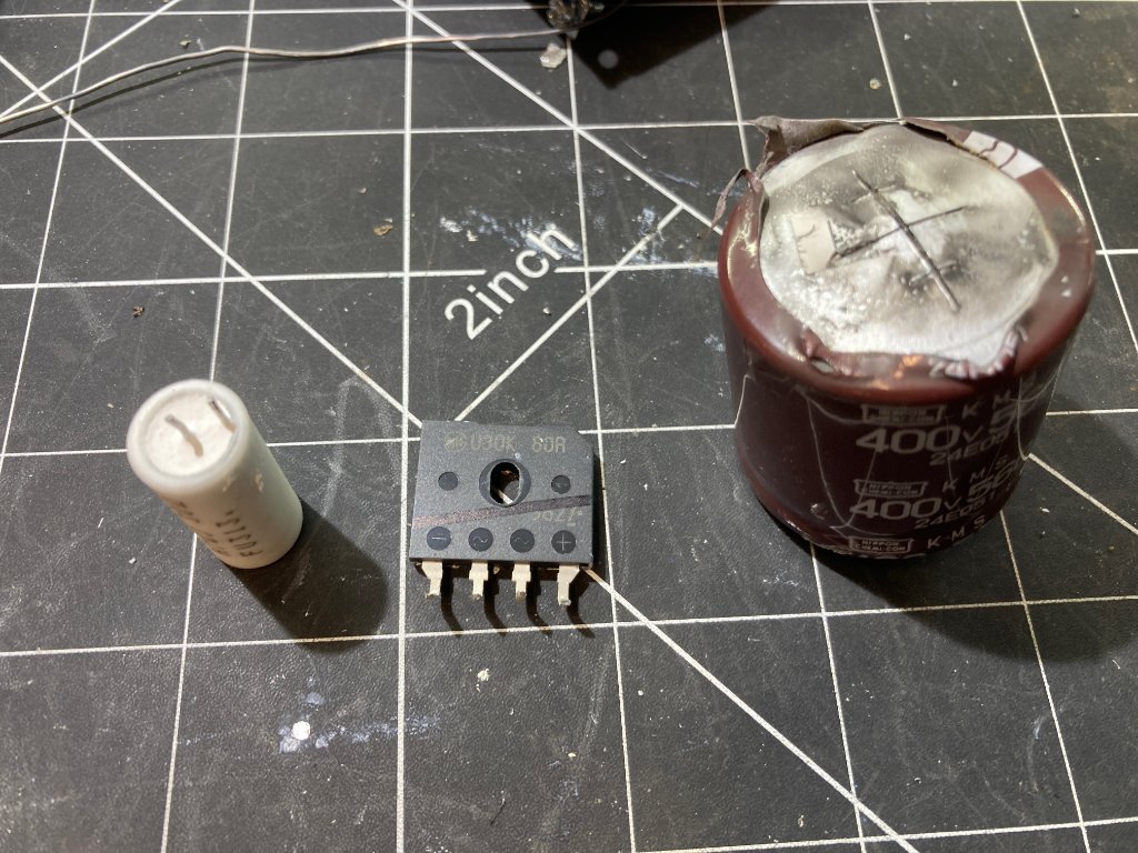 Unfortunately, his laser cutting machine suffered a catastrophic failure before I got there in one of the servo motor drivers. We took it out and there was a few blown parts. I brought it home and am fixing it now. This cap is 400v and 546uf! not something I carry in my parts bin. I ordered the parts Fedex next day air and should have it working for him on Tue. I had no idea I'd be in the laser cutting machine repair business, but I'm willing to do whatever it takes to get this project into production.