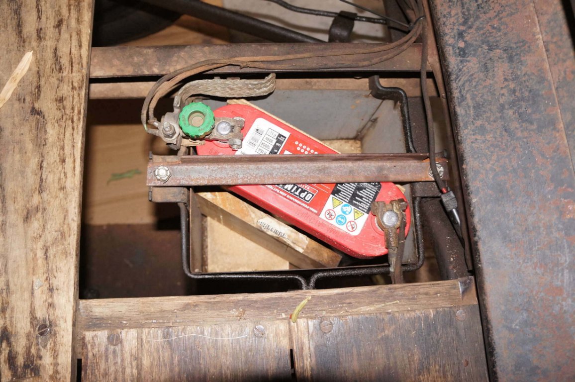 Dan's hold wooden hold down bar is a neat job in a standard battery carrier.