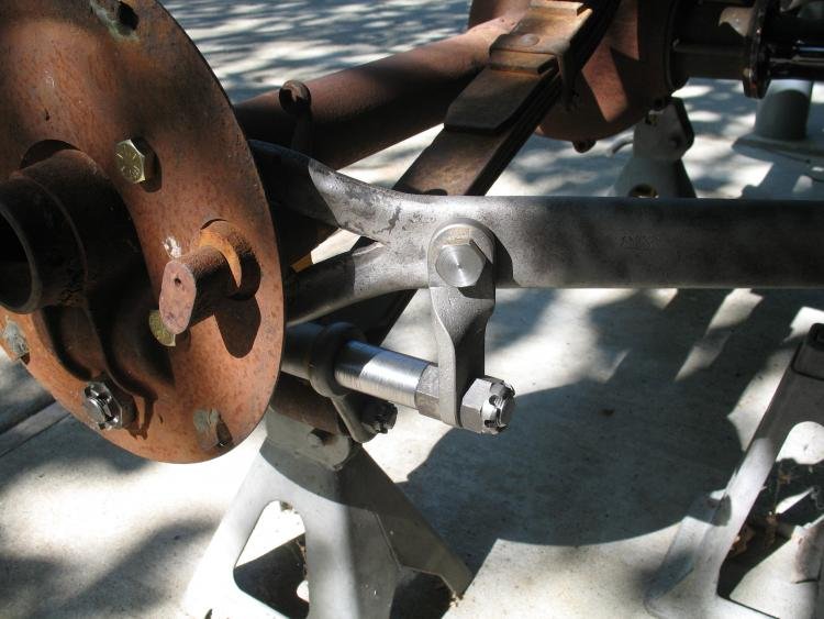I like the set-up shown for lowering the rear of the car. As for the rear radius rod being weak...if you look at the way a radius rod is made, it seems to have some real strength in this area. There is a roughly 1/4" thick bar that is split to form the two legs or the radius rod. The radius rod tube is also split and the "Y" shaped 1/4" bar is inserted into the tube then it is brazed or welded (don't remember which) into the tube. So, I believe in the area where the bolt is shown going through may be about in the middle of the 1/4" bar. I found out about that 1/4" bar when I just cut, removed, and welded the tube back together (several inches forward of where the bolt is sown here) when I installed a Warford years ago. The weld I made broke. That is when I discovered there was a solid bar (the 1/4" "Y") that I should have welded the tube to. I did that and have had no more problems.