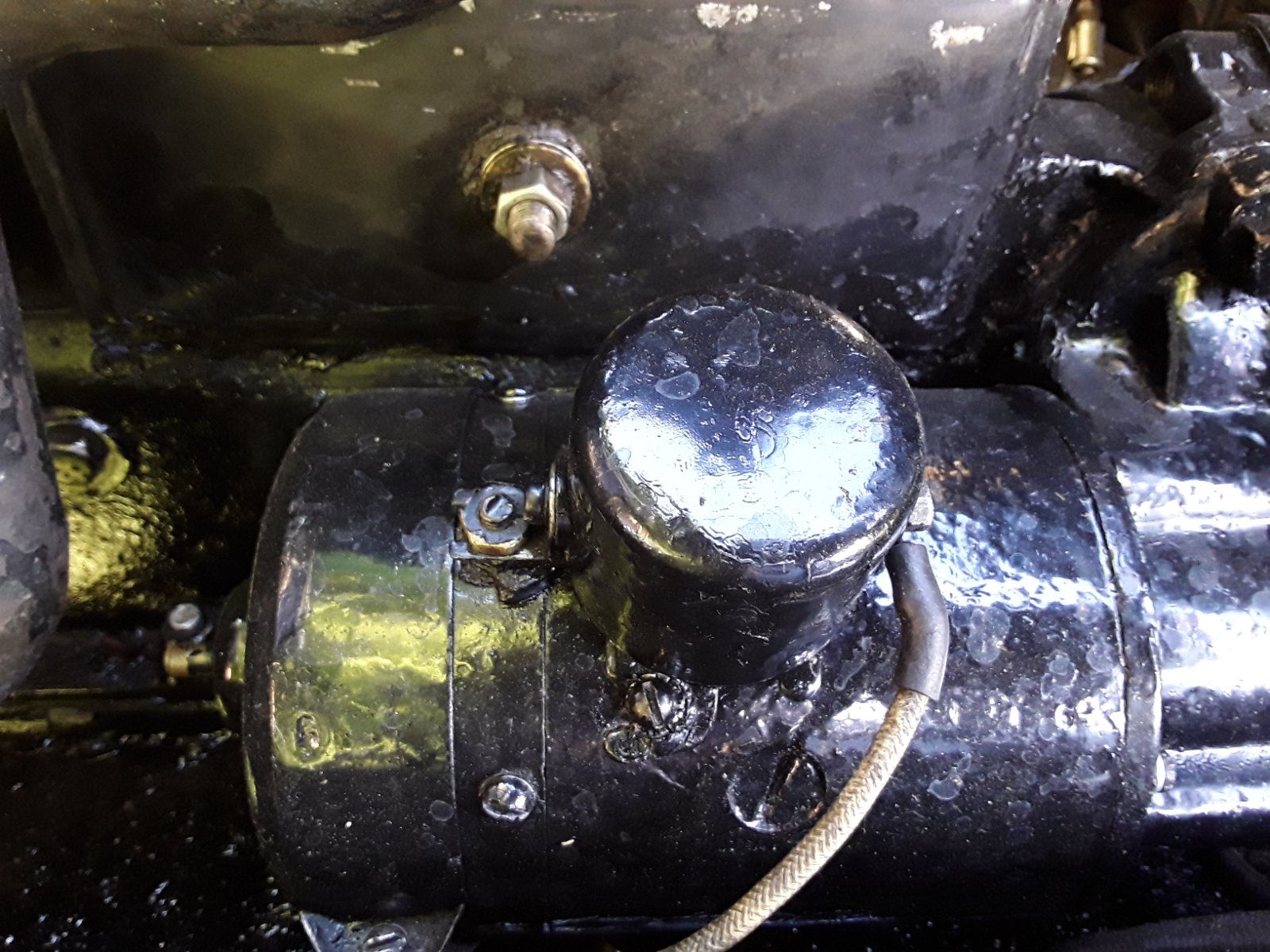 a couple of months ago I repaired a fallen off wire in the T's generator. I figured that maybe the generator had become too hot and the solder became soft. Since then I've had no problems and the ammeter stays at 10 to 12 amps with the lights off. Under 30 mph with lights on, the ammeter shows a slight discharge. I thought since I have still enough juice for the starter the next morning the setting of the third brush is about right. The ahooga horn instead sounds a little weak, always! That was different when the car came to me. I have since replaced the battery with an agm optima yellow top. It is a 6V system although with weak magnets. She does run on mag but sorta rough so the switch stays on "bat".