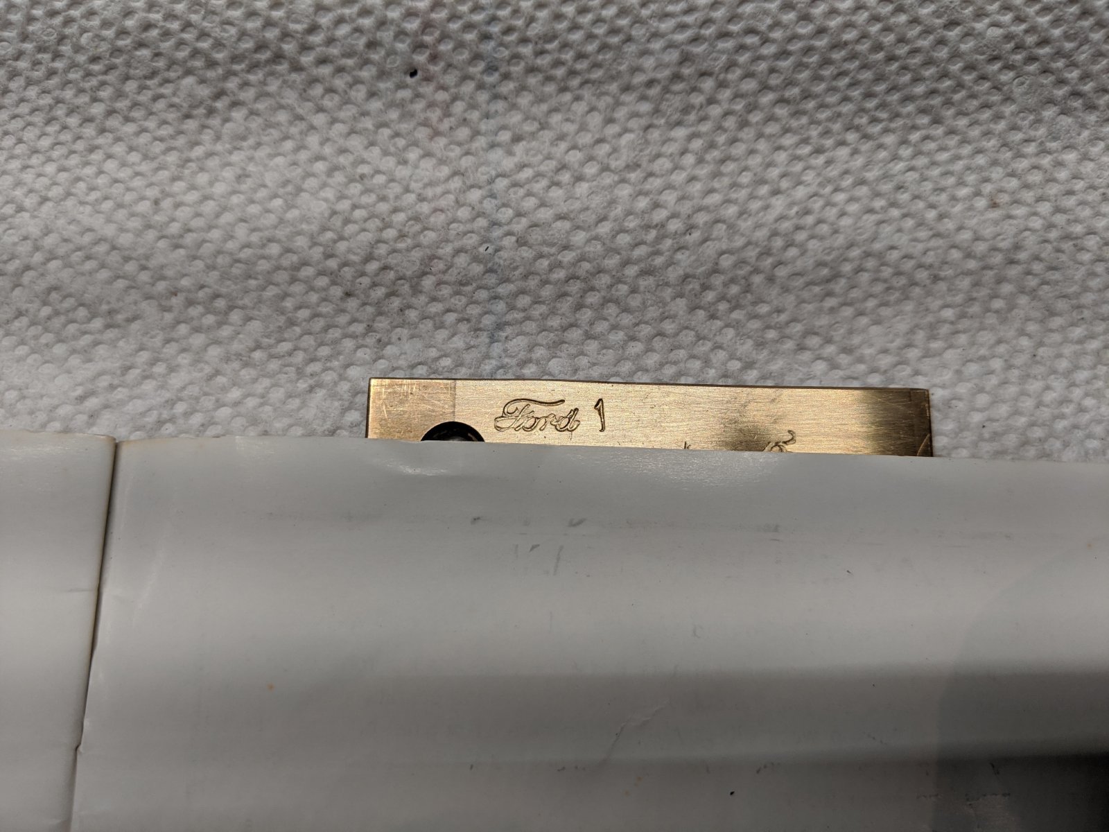 I'm thinking it is a stamp to mark factory tool room tools.(maybe tool room department #1) ?? I have several common hand tools that are marked wth a small FORD script that appear to be hand stamped.. Things like hammers,pipe wrenches, chiseled, ECT. Factory tool room tools were marked to help prevent tool theft.