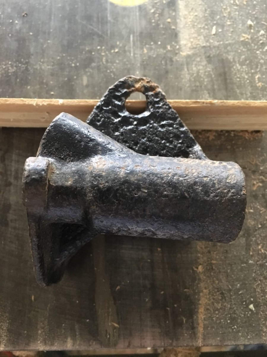 That looks like a ‘26-‘27 steering column bracket in really bad shape. It fastens to the left frame rail with 3 bolts and the brass bushing slips over the bottom end of the steering column also encompassing the spark and gas rods.