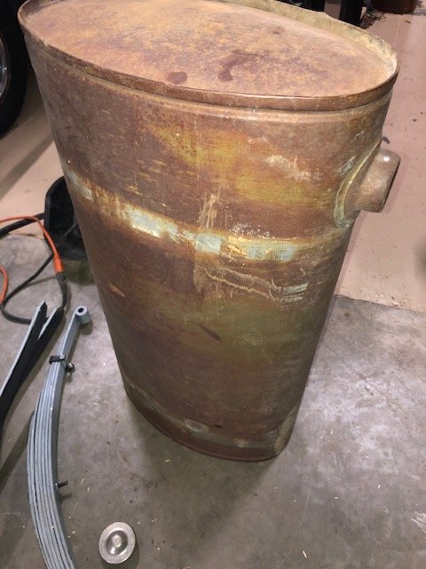 Resurrected! The radiator shop metal man was good, I watched him fix it the first time but the strategy was not good. So I spoke to John T and he suggested take the end cap all the way off straighten it and put it back on. So I took it back and voila! Looks pretty good. They also metal brushed the loose rust off the inside while the end cap was off and took some minor dings out. Good enough to use I think. I didn't want to post the exploded picture because it horrified me but now that it is all back and then some check it out. Next up: he told me the sides are delicate don't sand blast. I plan on wire wheel brushing off the external rust then Metal prep then a good primer. I haven't decided on a final painter yet, maybe me. Suggestions for good primer are open. The Sherwin Wiliams Macropoxy 645 B58 W 610 primer that the blasting yard used seems like pretty stout stuff should I use that? Picture 1 Egads exploded, oof bad! Picture 2 fixed but not good. Picture 3 Pretty good.