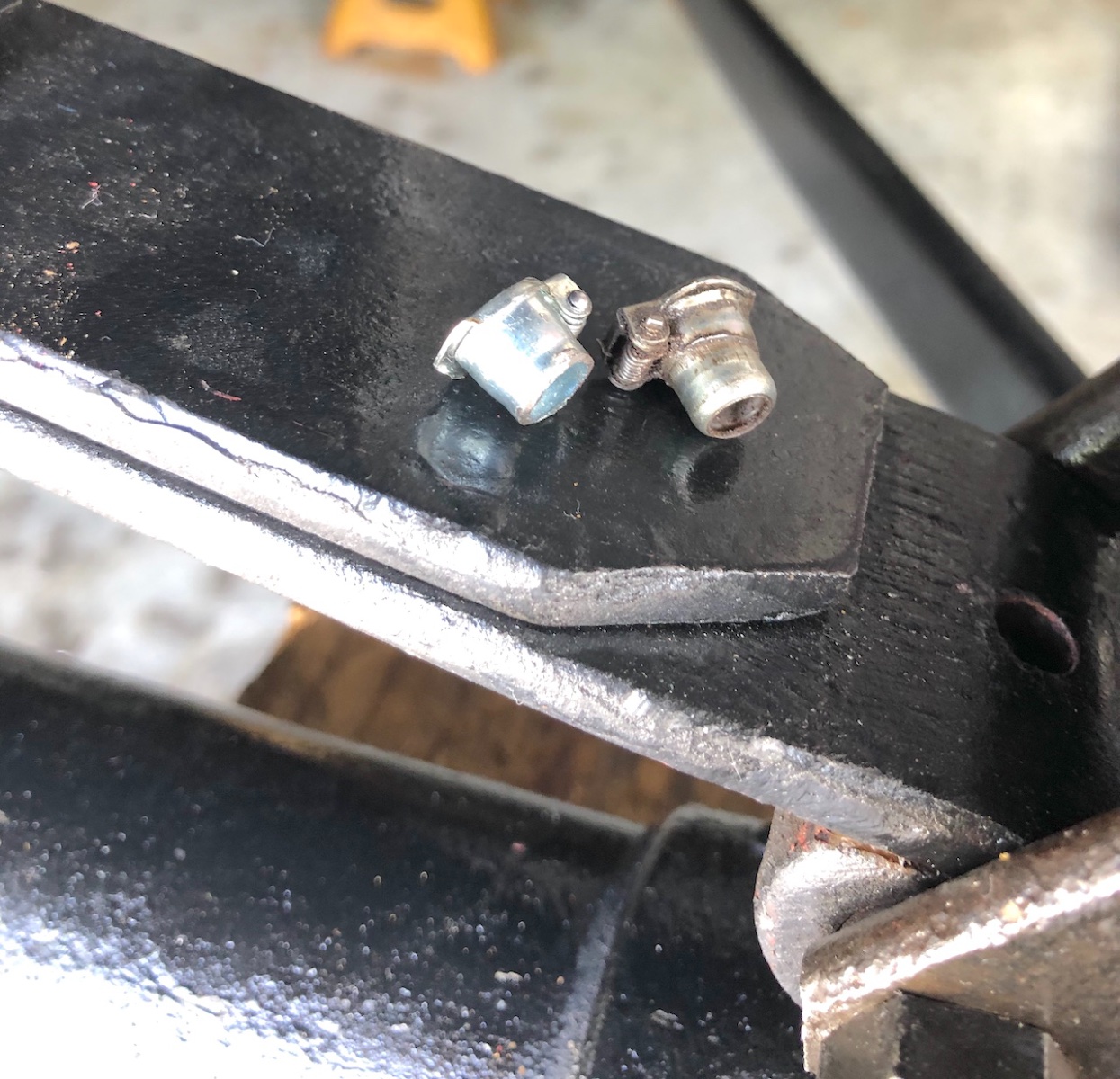 Then sneak the stubby oiler in place, used a small screwdriver blade as lever, to roll it down and in the hole. Then seated with a blow on the punch resting on the screwdriver blade to spread the force.