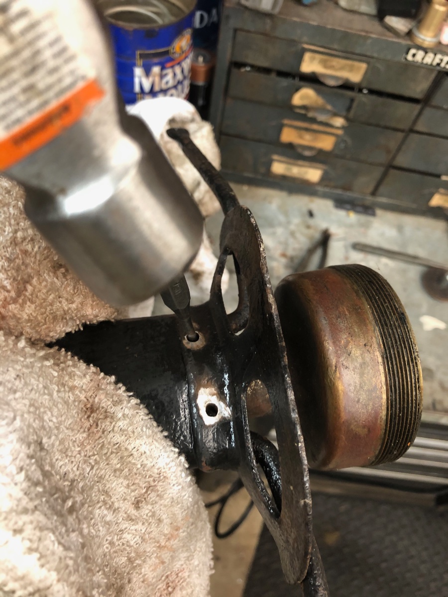 Then punch out with drift that will fit into your drilled pilot hole. Lots of times they loosen up with just the center punch.
